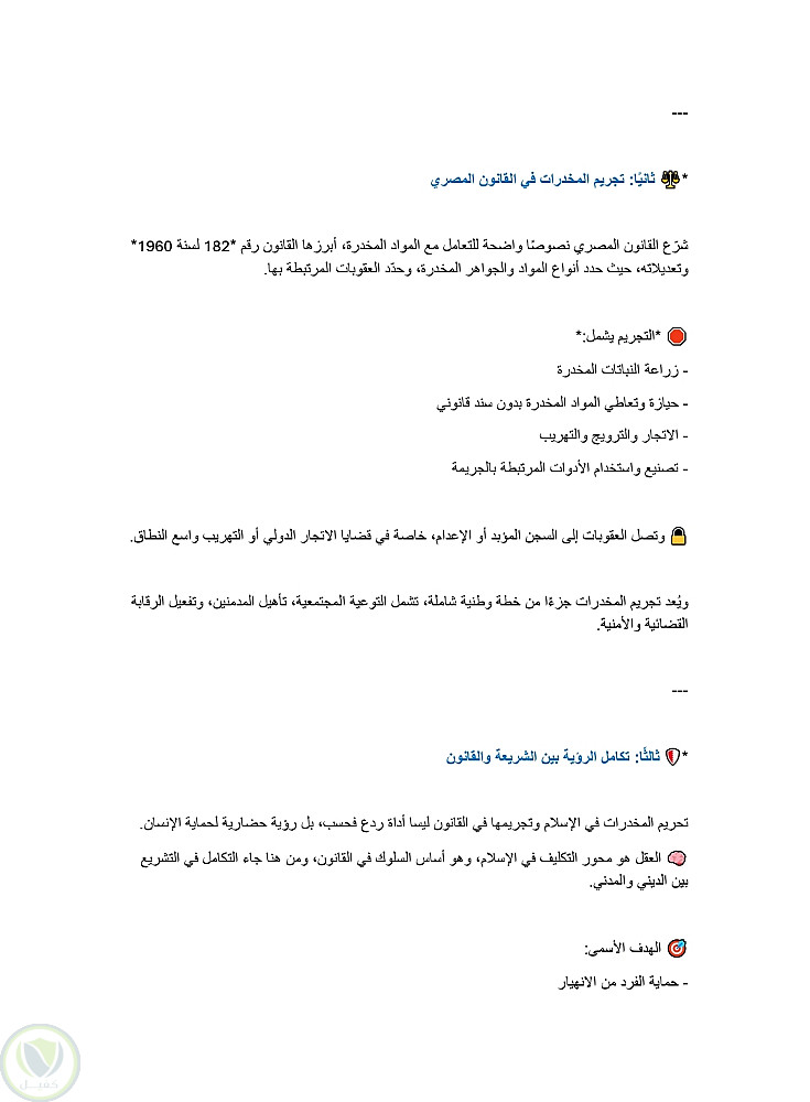 *"تحريم المخدرات في الشريعة الإسلامية وتجريمها في القانون المصري"*