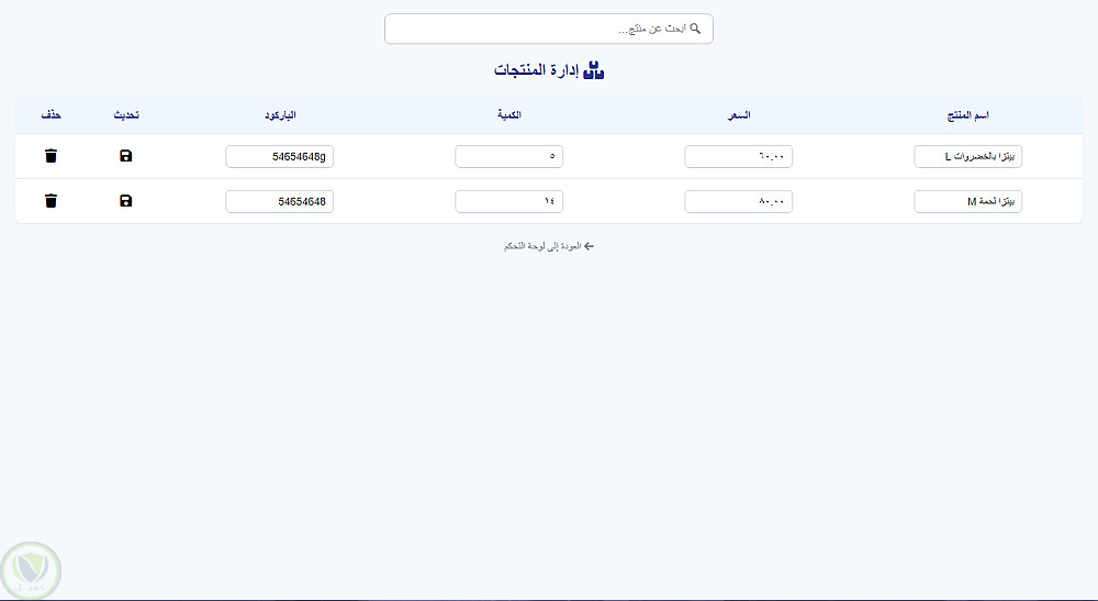 إدارة المخزون: تتبع المنتجات والكميات المتوفرة وتنبيهات عند انخفاض المخزون.