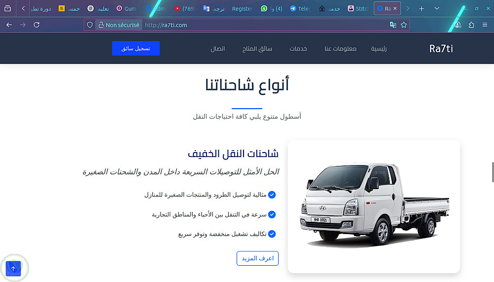 الموقع يوفر واجهة تسجيل للسائقين، عرض الطلبات، وتتبع الحالة (نشط / غير نشط) من خلال قاعدة البيانات مباشرة دون الحاجة لتسجيل الدخول.