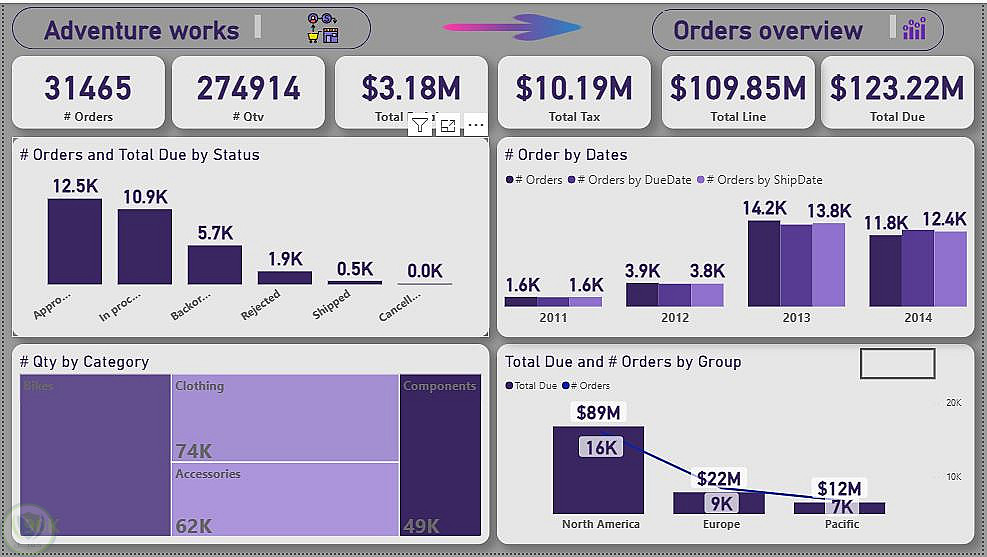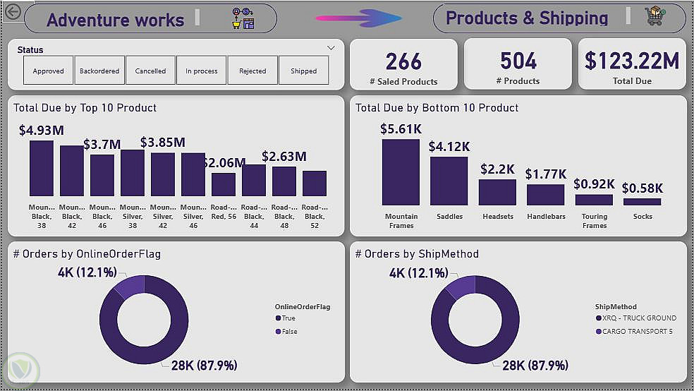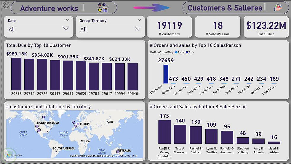 تحليل بيانات مبيعات AdventureWorks باستخدام Power BI – داشبورد تفاعلي متكامل.