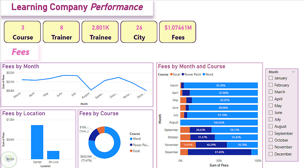 تحليل أداء لمركز تدريب باستخدام Power Bi