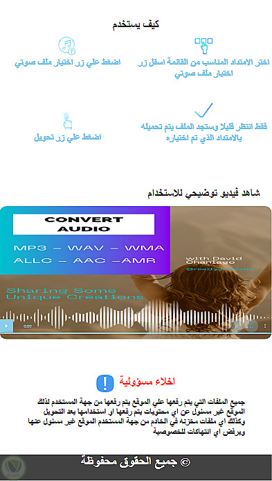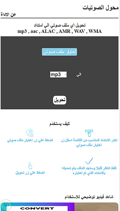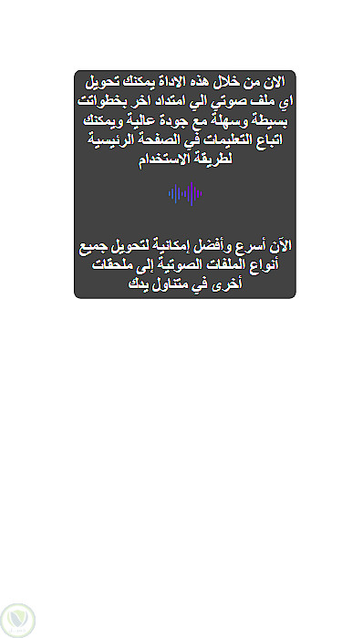 أداة ويب تمكنك من تحويل الملفات الصوتية من أي امتداد الي امتداد اخر مثلا اذا كان لديك ملف صوتي بامتداد Amr يمكنك تحويله الي mp3 يتم التحويل بشكل سريع ودون التأثير علي جودة الملف