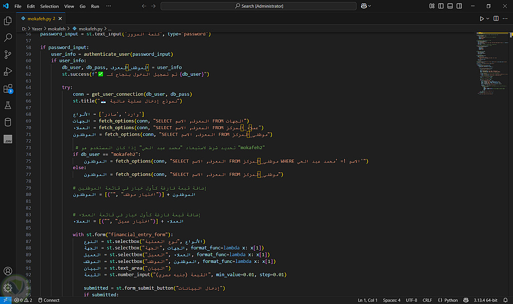الحل: نظام "اليسر" المتكامل. هو حل برمجي يعتمد على قاعدة بيانات MySQL وواجهة Streamlit سهلة الاستخدام، ويوفر نظاماً مالياً آمناً ودقيقاً.