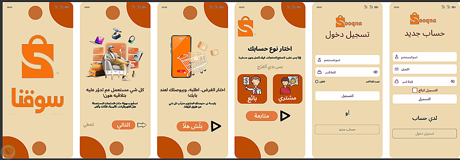 قمت بتصميم واجهات كاملة لتطبيق متجر إلكتروني اسمه "سوقنا" موجه للبائعين والمشترين. التصميم متجاوب ومرتب على Figma، وبيحاكي تجربة مستخدم سهلة وعصرية.