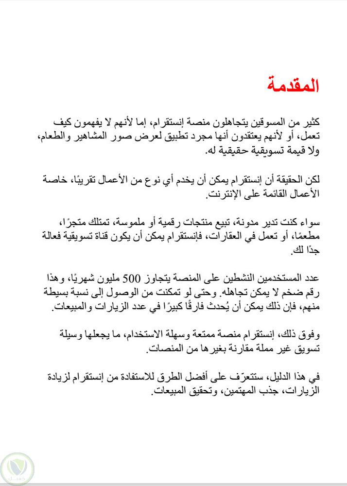 إعداد وتنسيق دورة تعليمية مكتوبة حول تسويق إنستقرام