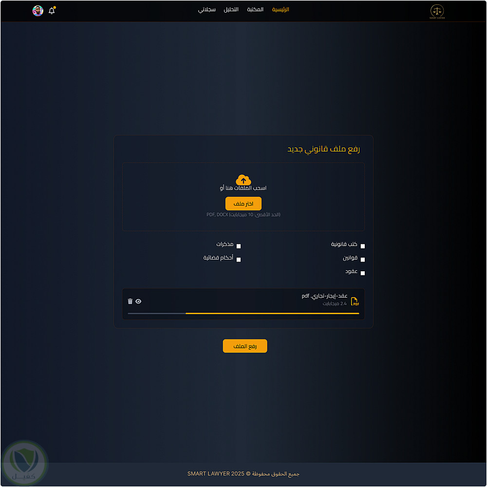 Smart Lawyer AI: منصة تحليل المستندات القانونية الذكية