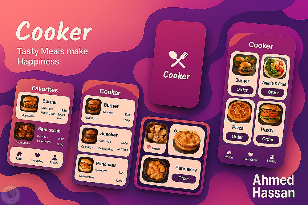 Cooker تطبيق حديث وجذاب لطلب الطعام، مصمم لتجربة مستخدم سريعة وبديهية. صُمم كوكر باستخدام منصة Flutter، ويجمع بين واجهة المستخدم وتجربة المستخدم الرائعة والأداء العالي ليقدم تجربة توصيل طعام سلسة وسريعة الاستجابة. يعرض التطبيق قائمة غنية بالوجبات، مما يشجع المستخدم على التفاعل من خلال تصميم ذكي، ومؤثرات بصرية قوية، وتصفح سلس. الميزات الرئيسية: تصميم عصري لواجهة المستخدم: بطاقات طعام جذابة بأسعار واضحة، وعبارات حث على اتخاذ إجراء، وخاصية التفضيل. تنقل بسيط: شريط تنقل سفلي مع انتقالات سلسة بين الصفحة الرئيسية، والطلبات، والمفضلة. طلب بنقرة واحدة: أزرار "طلب" واضحة ومباشرة أسفل كل صنف، مما يقلل الاحتكاك. نظام المفضلة: أيقونة قلب لحفظ الوجبات بسرعة لوقت لاحق. متجاوب تمامًا: متوافق تمامًا مع جميع أحجام الشاشات، بفضل دعم Flutter متعدد المنصات.