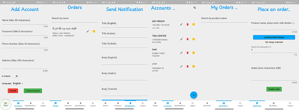 تطبيق مخصص تم تطويره لشركة TNA لتسهيل إدارة الطلبات والتواصل مع الموزعين بالجملة. يبيّن قدرتي على:
