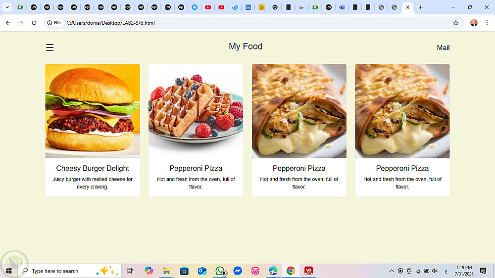 تصميم واجهة جذابة لعرض الوجبات باستخدام بطاقات (Cards)