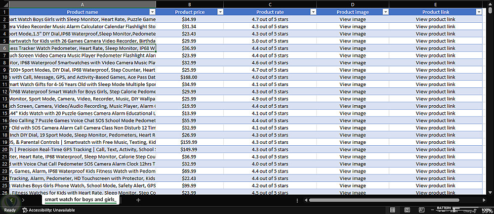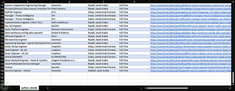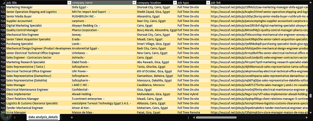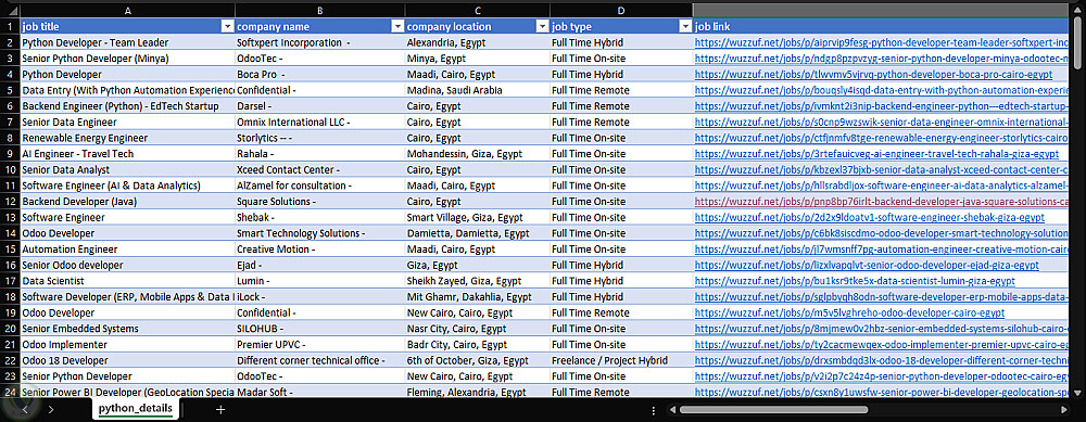- وفي النهاية نحصل على ملف منظم يحتوي على كل البيانات المطلوبة، جاهز للاستخدام في التحليل أو أي أغراض أخرى.