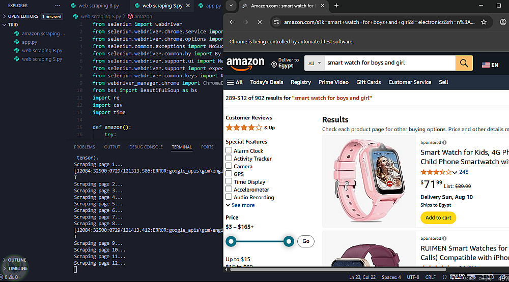 - استخدام مكتبات قوية مثل Selenium و BeautifulSoup لاستخراج البيانات حتى من المواقع المعقدة.