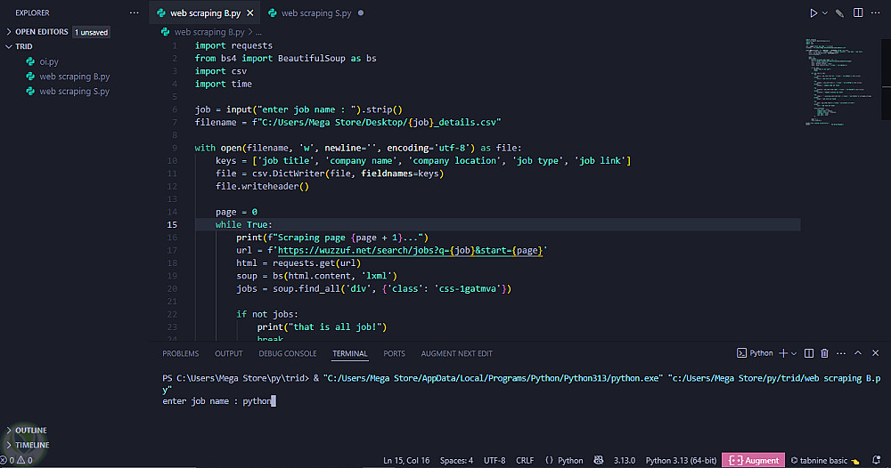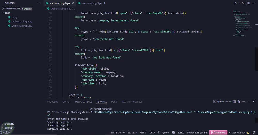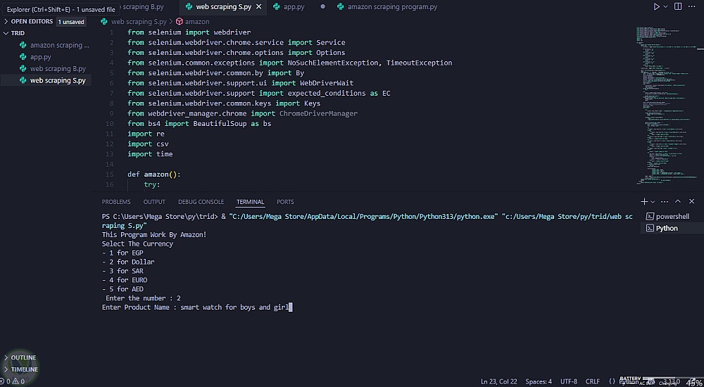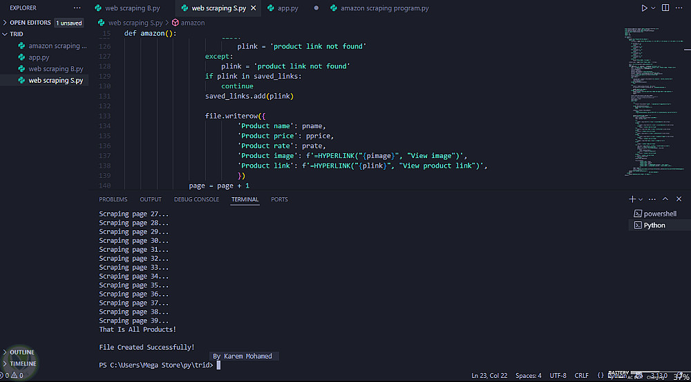 في هذا المشروع أقوم باستخراج البيانات المطلوبة من المواقع المختلفة بشكل احترافي باستخدام لغة Python، مع تجهيزها لتكون قابلة للاستخدام المباشر مثل مشروع استخراج الوظائف ومن اقوي المشاريع التي عملت عليه بسبب نظامه المعقد والحماية الخاصة به استخراج جميع المنتجات من موقع امازون بشكل تلقائي.