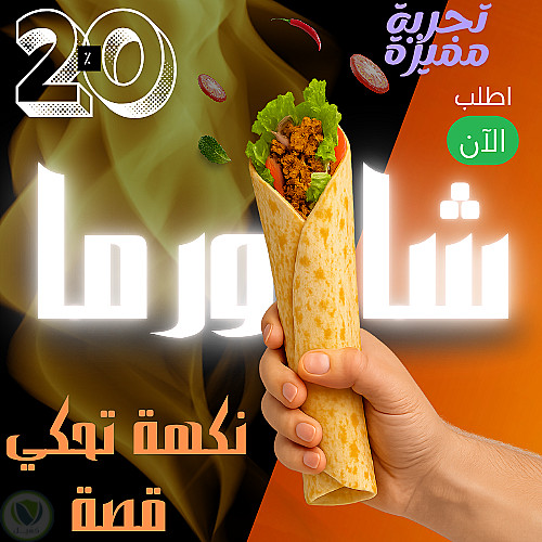 تصميم إعلان دعائي واقعي لساندويتش شاورما