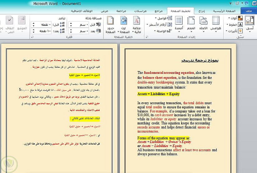 نموذج ترجمه يدوي 100%(تجريبي) بعنوان : "معادلة ميزان المراجعه"