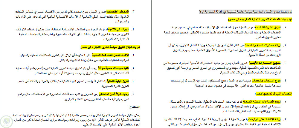 نموذج تفريغ صوتي يدوي 100% بعنوان "سياسة تحرير التجارة الخارجية في مصر" (اقتصادي)