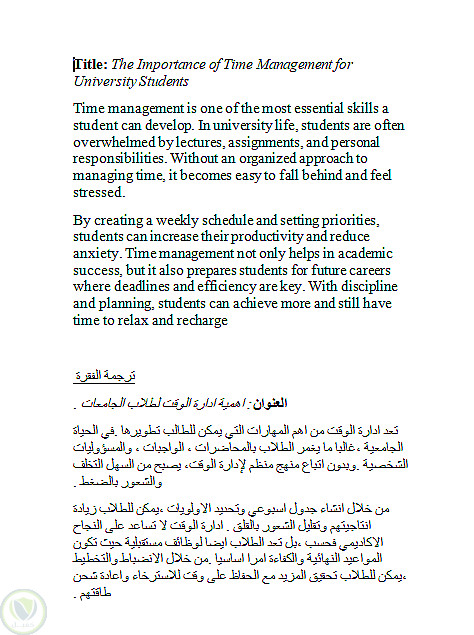 نموذج ترجمه يدوي 100% بعنوان "أهمية إدارة الوقت لطلاب الجامعات"