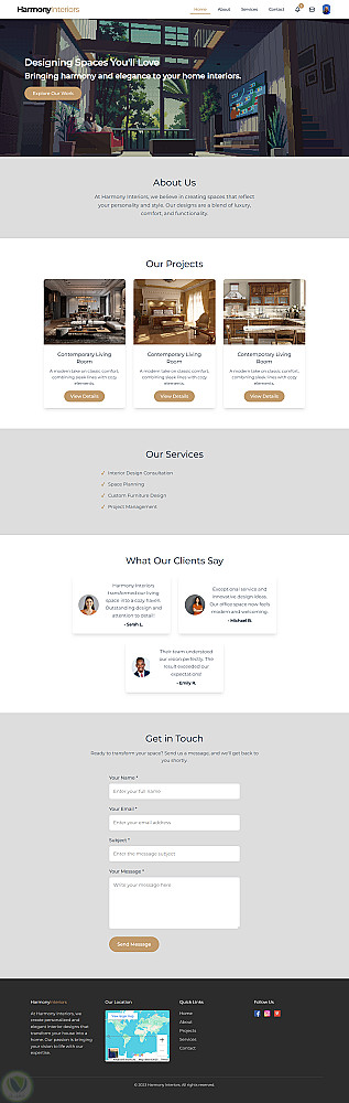 موقع ويب تفاعلي مخصص لمصممي الديكور الداخلي، يتيح لهم عرض أعمالهم باستخدام تقنيات النمذجة ثلاثية الأبعاد (3D Modeling). يوفر الموقع تجربة مستخدم سلسة وجذابة، حيث يمكن للعملاء تصفح الأعمال المنفذة، استكشاف تصاميم المساحات الداخلية بصيغة ثلاثية الأبعاد، والتواصل مباشرة مع المصممين. تم تصميم الموقع ليكون متجاوبًا بالكامل، مما يضمن تجربة مثالية على جميع الأجهزة (الهواتف الذكية، الأجهزة اللوحية، وأجهزة الكمبيوتر).