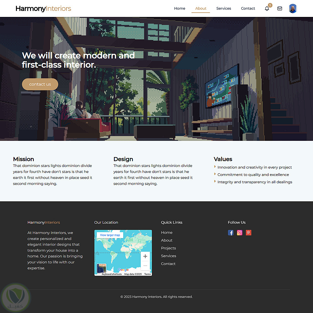 تصميم وتطوير موقع ويب لمصممي الديكور الداخلي