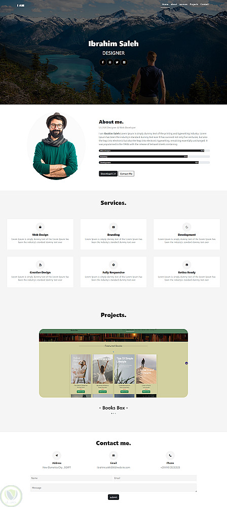 قمت بتصميم قالب ويب متكامل لصفحة شخصية احترافية، مخصص للمطورين والمصممين لعرض سيرتهم الذاتية، المهارات، الخدمات المقدمة، المشاريع المنفذة، وطرق التواصل بشكل جذاب ومنظم.