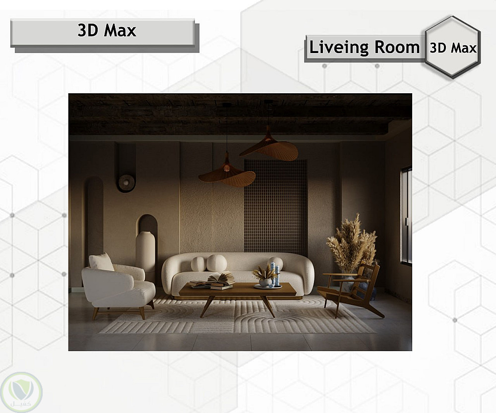 تم تنفيذ هذا التصميم باستخدام برنامج 3D Max لإظهار التفاصيل بدقة عالية ومحاكاة واقعية للأجواء والمواد.
