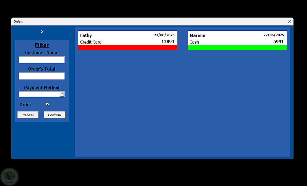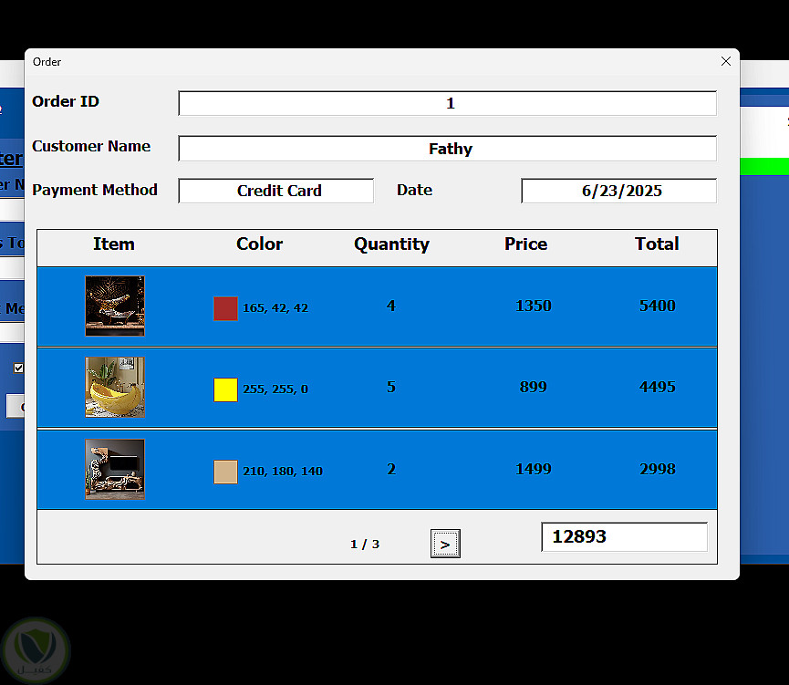 التطبيق بيساعد في إدارة الطلبات و تقدر تبحث عن أي طلب باستخدام الباركود، اسم العميل، التاريخ، السعر، أو حالة الشحن. ولو ضغطت مرتين على الطلب، بيظهرلك كل التفاصيل زي المنتجات، الألوان، والكميات.