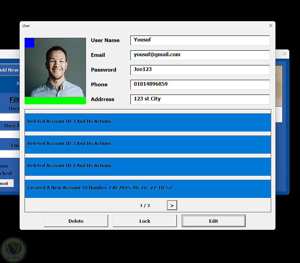 المدير يقدر يتابع كل اللي بيحصل من خلال سجل النشاطات، ويعدل بيانات المستخدمين، يغيّر الباسوردات، أو يحظر الحسابات من واجهة واحدة.