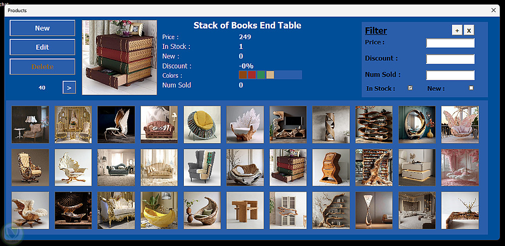 كمان فيه نظام لإدارة المنتجات، تقدر تصفّي حسب السعر أو اللون أو حالة المخزون، وتعدل البيانات في الوقت الحقيقي لو عندك صلاحية.
