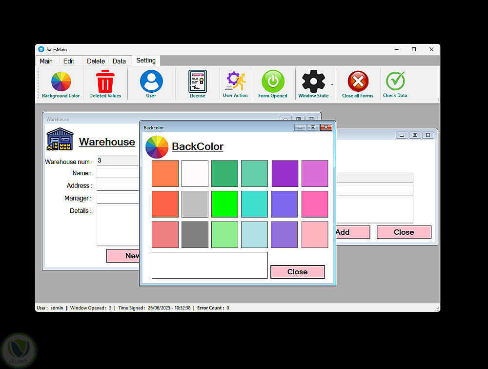 - إعدادات قابلة للتخصيص: تغيير الألوان، اللغة، التحكم في النوافذ المفتوحة، ومراقبة المستخدمين النشطين.