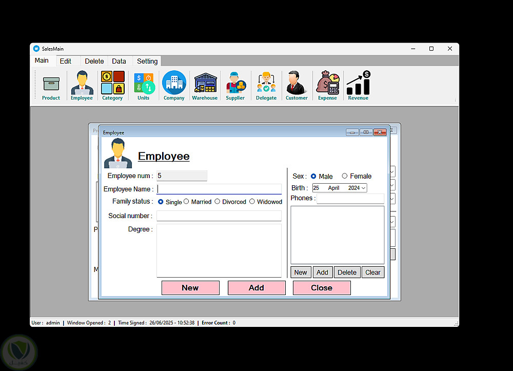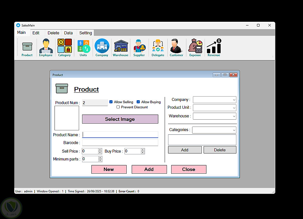 - إدارة شاملة للبيانات: منتجات، موظفين، شركات، مخازن، عملاء، موردين، مصروفات، وأرباح، مع ربط الكيانات ببعضها.