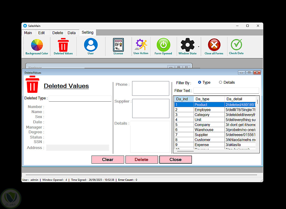 - تعديل وحذف مع سجل تغييرات: كل تعديل يتم تسجيله، والبيانات المحذوفة تبقى مرئية للمدير فقط مع إمكانية الاسترجاع.