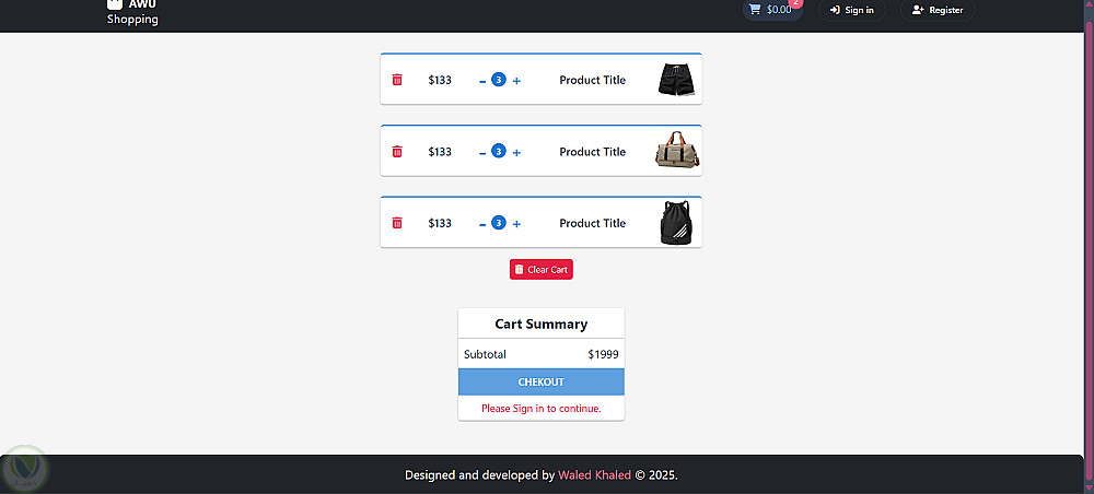 تصميم وتطوير موقع تجارة إلكتروني مخصص لعرض منتجاتك وبيعها عبر الإنترنت، مع توفير خاصية إضافة المنتجات إلى السلة، بالإضافة إلى صفحات تسجيل الدخول والتسجيل (Login / Sign Up)، وصفحة سلة المشتريات (Cart) لإدارة الطلبات بسهولة. الموقع سيكون متجاوباً مع جميع الأجهزة، وقابلاً للتطوير وفقاً لاحتياجاتك الخاصة