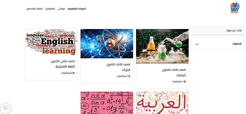 واجهة الطالب: الانضمام للكورسات عبر الأكواد، مشاهدة المحاضرات والواجبات، البحث والفلترة في الكورسات، مع حماية كاملة للمحتوى.