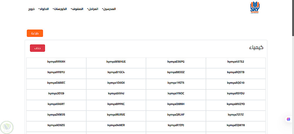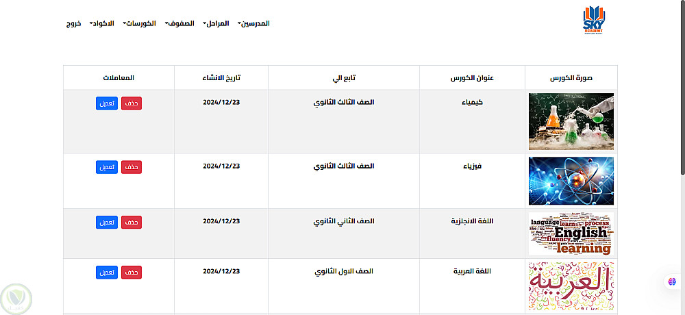 لوحة تحكم المسؤول: إدارة حسابات المعلمين، الصفوف، المراحل الدراسية، وإنشاء الكورسات مع توليد أكواد خاصة للالتحاق وتحديد مدة صلاحيتها. كما يمكنه إدارة الطلاب، عرض تفاصيل التحاقهم، ولوحة إحصائيات تفاعلية.