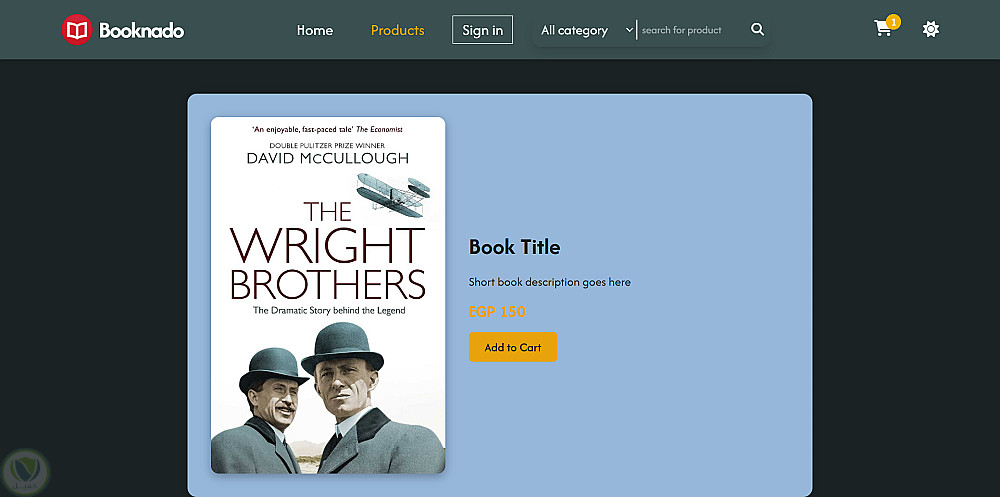 صفحة المنتج (Product): تحتوي على تفاصيل كل كتاب (الاسم، المؤلف، السعر، التقييم، وصف مختصر).
