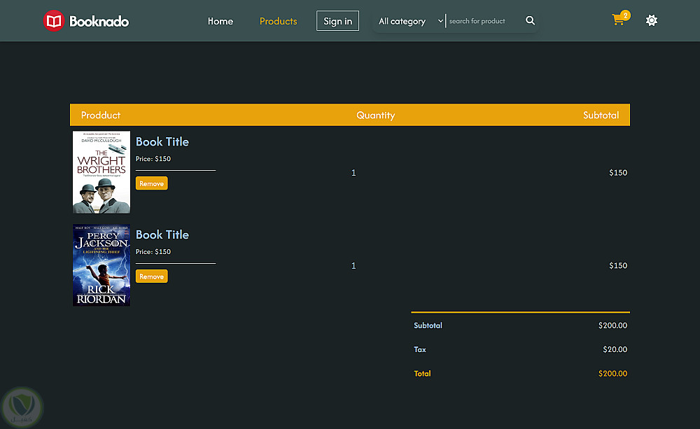 سلة المشتريات (Cart): يمكن للمستخدم إضافة الكتب ومراجعة الطلب قبل الشراء.