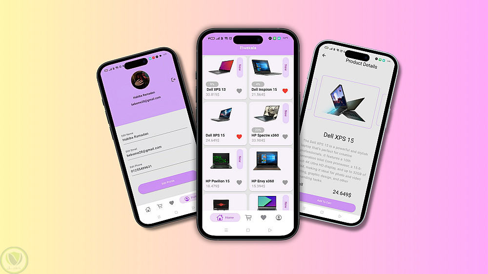 Elwekala App هو تطبيق مصنوع من خلال flutter لانواع laptops المختلفه و تم استخدام فيه: