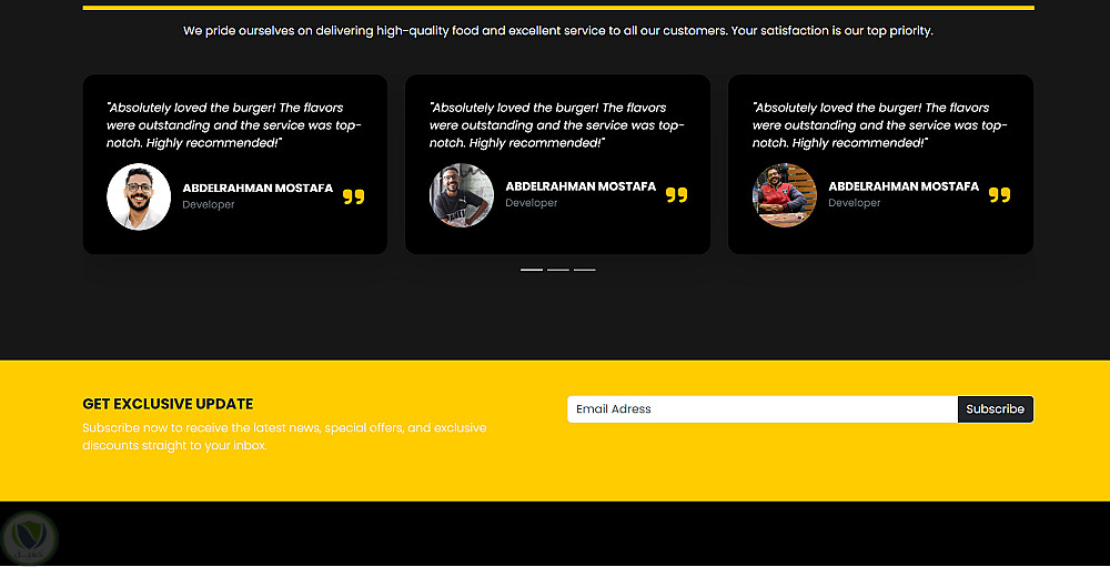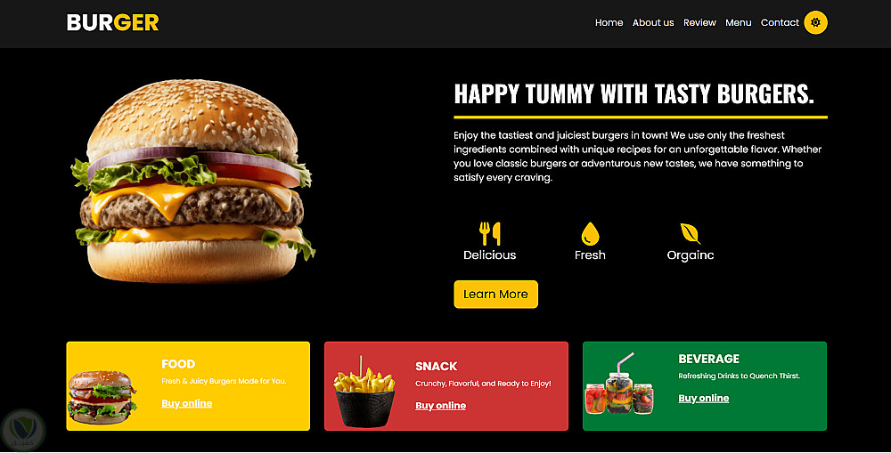 تصميم وتطوير موقع طعام حديث ومتجاوب (Responsive) باستخدام HTML – CSS – Bootstrap – JavaScript مع توفير نسختين (Themes) مختلفين للتصميم (مثلاً: Light Theme و Dark Theme).
