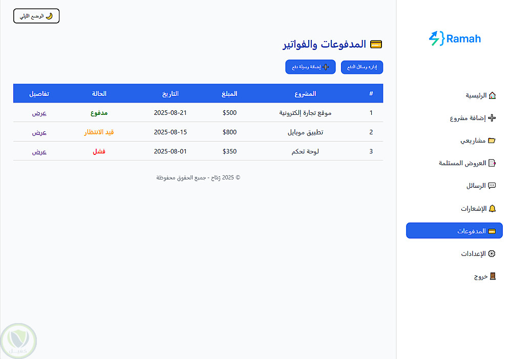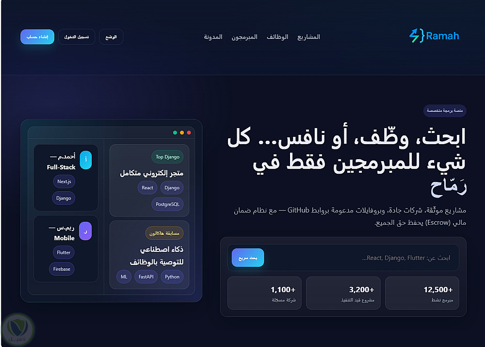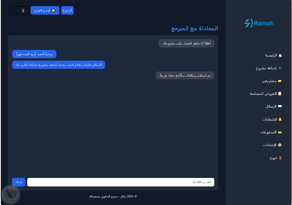 ارسلت البورتوفوليو فيه بعض من الاعمال التى قمت بها مع شرح لكل مشروع وارسلت لك بعض الصور لأخر اعمالى وهو منصة رماح وهى سوف تنافس فى الاسواق قريبا