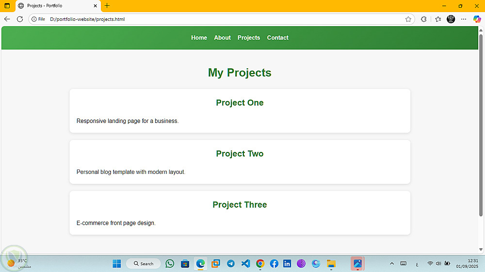 نموذج عمل عبارة عن موقع شخصي بسيط واحترافي، متجاوب مع جميع الأجهزة (كمبيوتر – تابلت – موبايل).