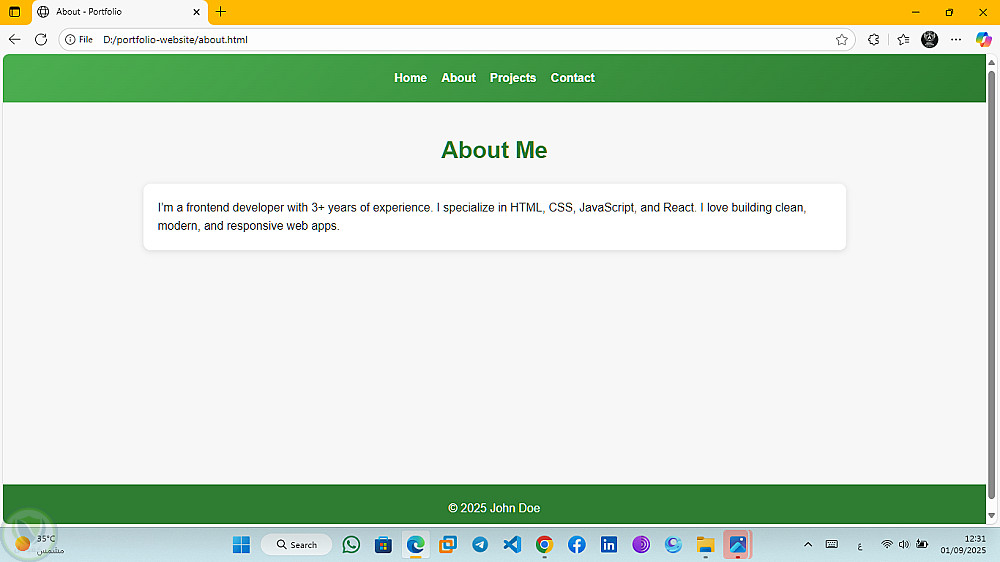 قسم عني (About) للتعريف بنفسك وخبراتك.