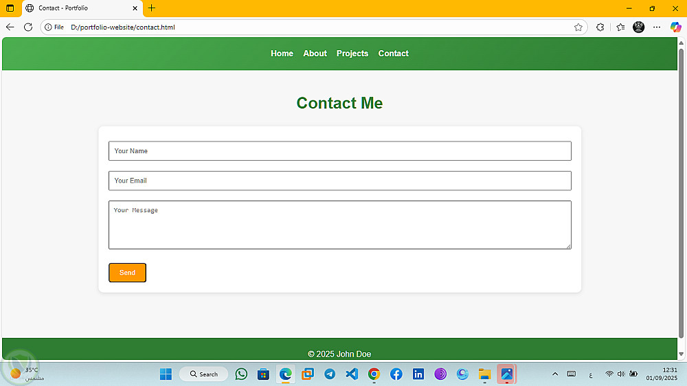صفحة تواصل مع نموذج رسائل (Contact Form).