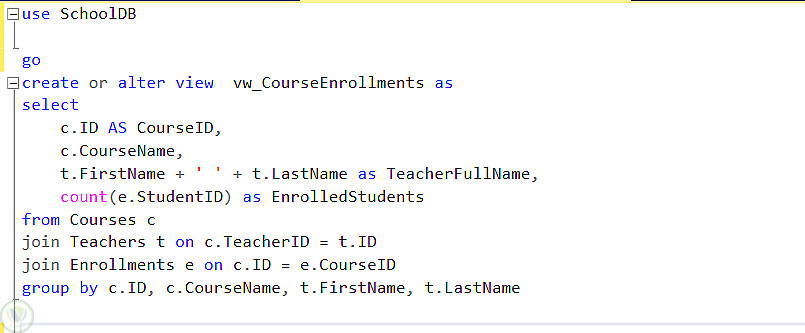 قمت بتصميم قاعدة بيانات لإدارة مدرسة صغيرة بهدف تنظيم وتسهيل عملية إدارة المعلومات داخل المدرسة. المشروع يساعد على حفظ وترتيب بيانات الطلاب والمدرسين والكورسات والأقسام بشكل منظم.