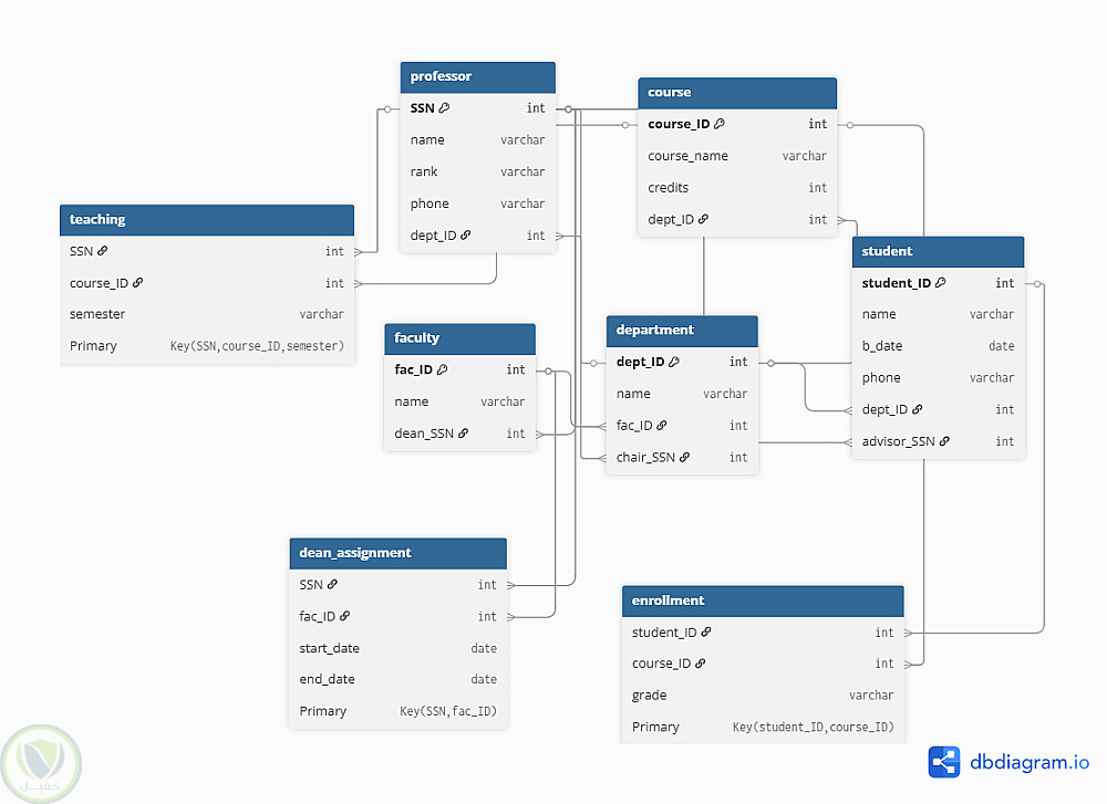 تصميم ERD و Mapping Schema لنظام إدارة جامعة