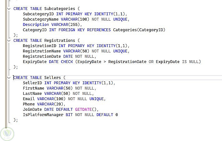 - كتابة سكربت SQL لإنشاء الجداول مع المفاتيح الرئيسية والخارجية .