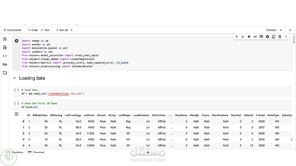 نماذج التعلم الآلي: تطبيق خوارزميات مثل Linear Regression.