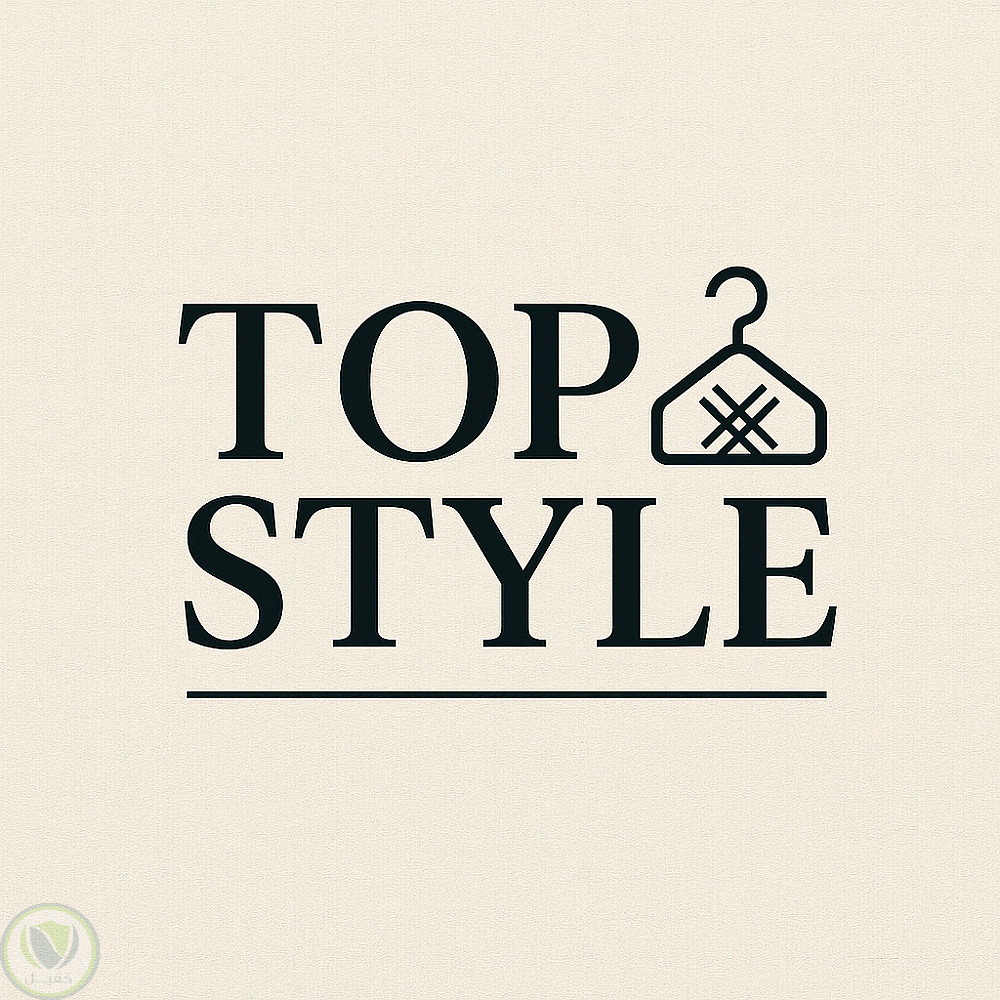 شعار أنيق مكتوب بخط واضح وكلاسيكي باللون الأسود على خلفية فاتحة، معقود بجانب كلمة "TOP" أيقونة على شكل شماعة ملابس، بداخلها زخرفة بسيطة. التصميم يوحي بالأناقة، التنظيم، والموضة، ما يجعله مناسبًا لمتجر ملابس أو علامة تجارية متخصصة في الأزياء.