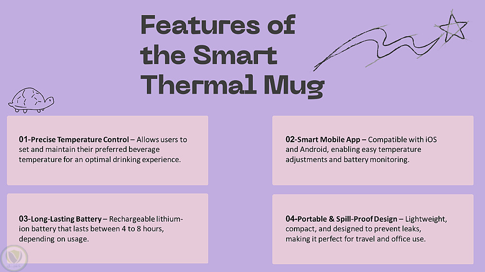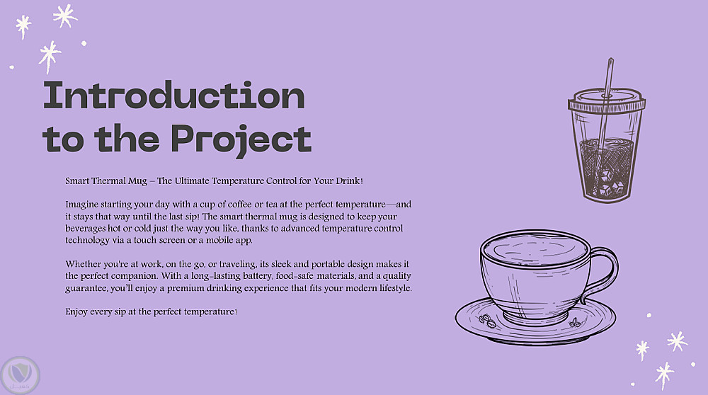 قمتُ بإعداد عرض تقديمي شامل على برنامجPowerPoint يتضمن خطة تسويق رقمي (Digital Marketing Plan) لمنتجSmart Thermal Mug.