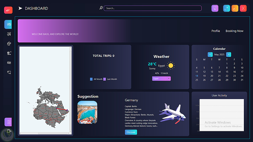 * طوّرت تطبيقًا منظمًا للرحلات قائمًا على **Java** يتضمن حجز الفنادق والرحلات الجوية، وعرض سجل الرحلات، مع دمج معلومات عن البلدان.