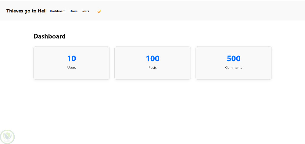 تنقل بين الصفحات من خلال شريط جانبي يربط بصفحات أخرى ضمن الداشبورد (مثل Users و Dashboard) بجانب صفحة Posts.