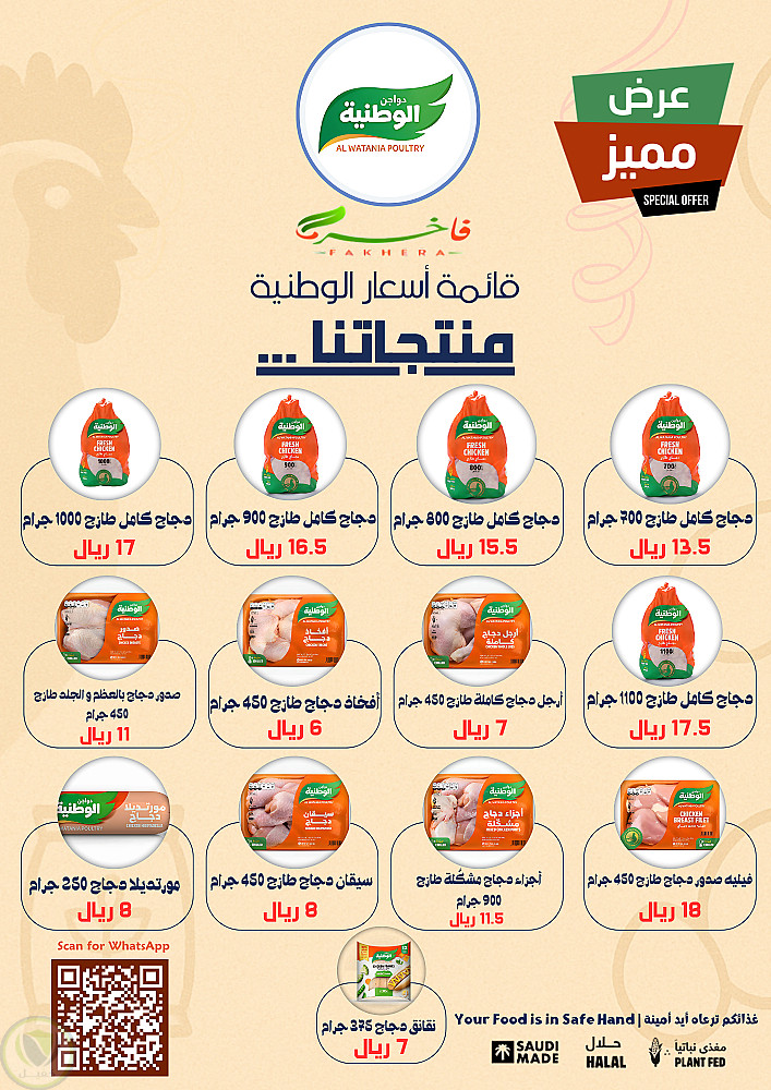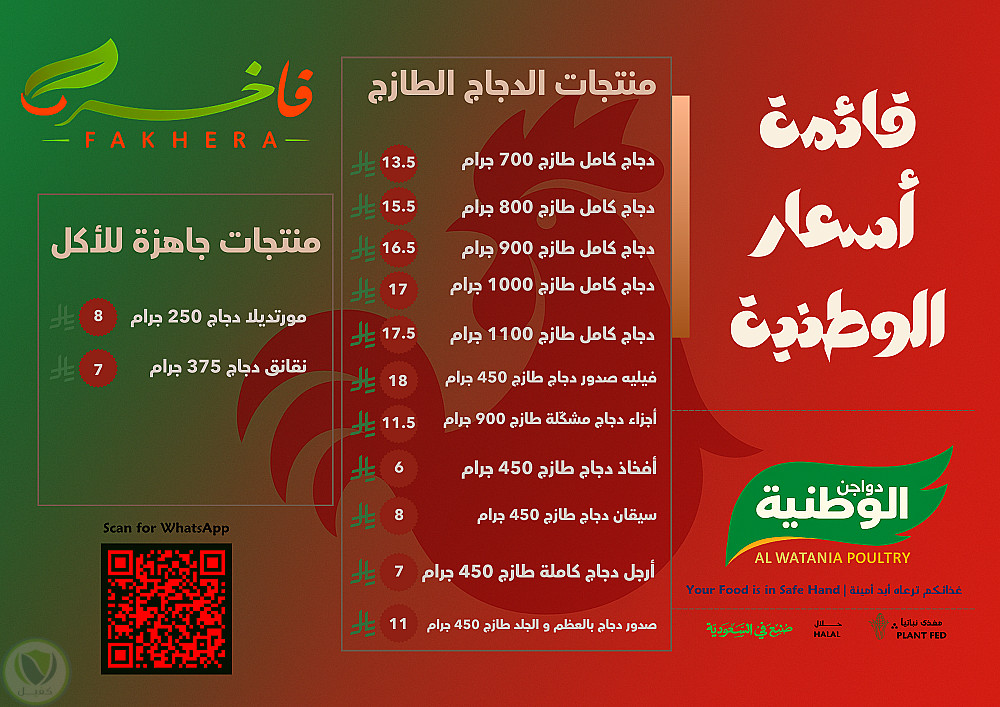 ✅ قمت بتصميم قائمة أسعار احترافية لمنتجات دواجن الوطنية بمقاس (A4 أفقي)، مع مراعاة: